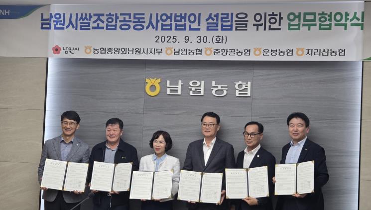 [뉴스스텝] 남원시는 이번 9월 30일 남원농협에서 농협쌀조합공동사업법인 설립을 위해 남원시(남원시농업기술센터소장), 농협중앙회남원시지부, 남원농협, 춘향골농협, 운봉농협, 지리산농협과 업무협약식을 개최했다.