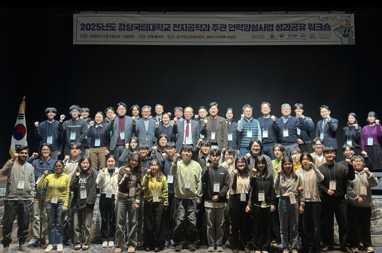 [뉴스스텝] 경상국립대학교 ICT혁신인재사업단과 S2X인공지능기반유무인복합체계교육연구단(이하 BK21 STAR사업단)(양 사업단 단장 이왕상 전자공학부 교수)은 12월 5~6일 쏠비치 남해에서 ‘2025년도 경상국립대학교 전자공학과 주관 인력양성사업 성과공유 워크숍’을 개최했다.