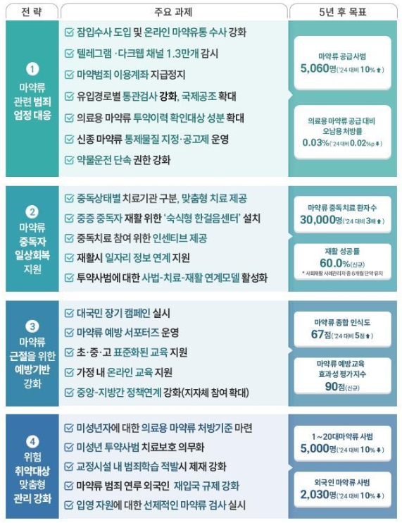 ▲ 제1차(2025~2029) 마약류 관리 기본계획 주요 과제 |