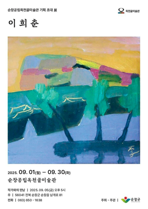 먼저, 8월 30일부터 9월 30일까지 순창공립 옥천골미술관에서는 이희춘 작가 초대전이 열린다. 이희춘 작가는 동양철학을 바탕으로 자신만의 ‘몽유화원’ 세계를 펼쳐온 화가로, 이번 전시에서는 기존과는 또 다른 시도를 선보인다.