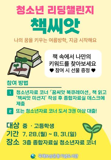 ▲ 국채보상운동기념도서관, 여름방학 청소년을 위한 ‘리딩챌린지 '책씨앗'’운영 |