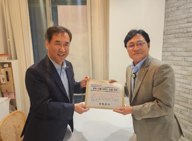 [뉴스스텝] 박용철 강화군수는 지난 8일 국회 국토교통위원회 맹성규 위원장을 직접 만나, 서울행 광역급행버스 ‘M버스’ 노선 신설을 요청하는 공식 건의서를 전달했다.