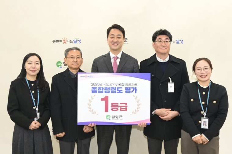 [뉴스스텝] 대구 달성군이 국민권익위원회가 발표한 ‘2025년 공공기관 종합청렴도 평가’에서대구·경북지역 기초자치단체 중 유일하게 최고 등급인 1등급을 획득하며 명실상부한 ‘청렴 도시’로 인정받았다.