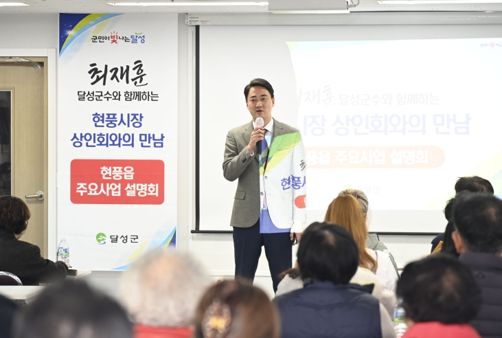 이날 행사에는 100여 명의 상인회 회원과 주민이 참석했으며, 최재훈 군수가 직접 나서 현풍읍 일원에서 진행되는 주요 사업의 추진 배경과 향후 구상을 설명했다. 아울러 상인들과 함께 추진 중인 사업들을 시장 상권과 연계해 방문객을 늘리고 상권 활력을 높일 방안을 논의했다.