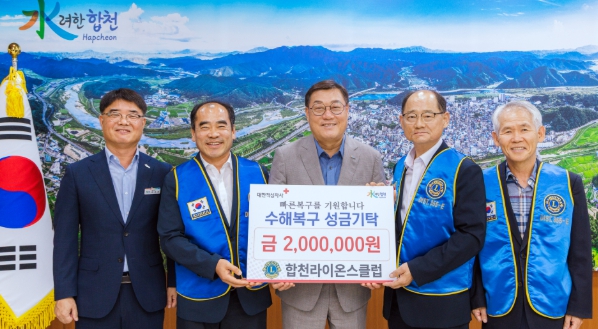 [뉴스스텝] 합천라이온스클럽(국제라이온스협회 355-E지구 소속, 회장 정종락)은 최근 기록적인 집중호우로 큰 피해를 입은 합천군의 수해 복구를 지원하기 위해 성금 200만 원을 기탁했다.