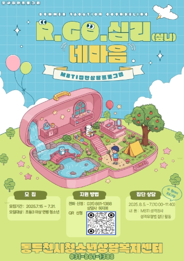 본 프로그램은 2025년 8월 5일부터 7일까지 동두천시청소년상담복지센터에서 총 3회차로 진행되며, 초등학교 3~6학년 청소년 누구나 무료로 참여할 수 있다.