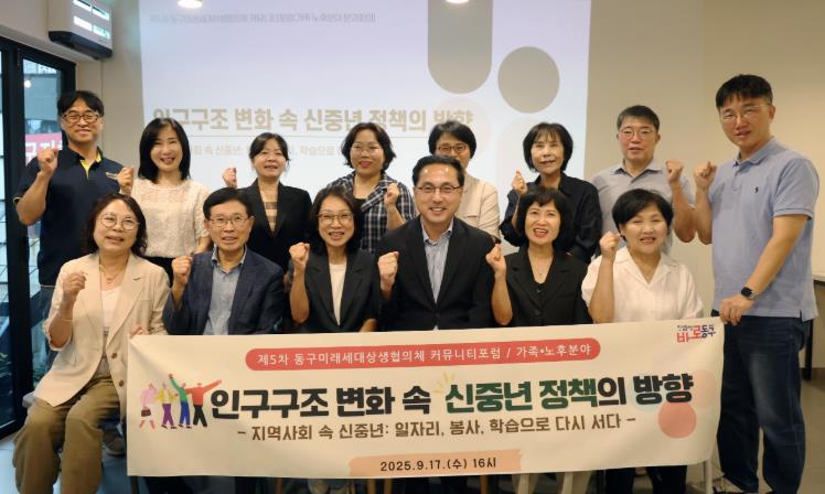 박희조 동구청장은 “저출생과 고령화라는 거대한 흐름 속에서 신중년 세대는 단순한 퇴직자가 아니라 지역사회의 활력과 지속가능성을 지탱하는 핵심 주체”라며 “앞으로도 신중년이 일·학습·봉사·문화 전반에서 활약할 수 있도록 정책적 지원을 아끼지 않겠다”고 말했다.