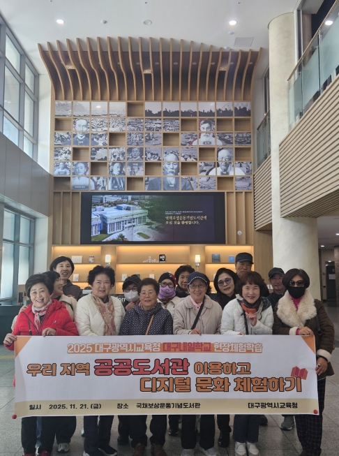 [뉴스스텝] 대구시교육청은 11월 21일 국채보상운동기념도서관에서 대구내일학교 초등과정 성인문해학습자 20명을 대상으로 디지털 도서관 현장 체험을 실시했다.
