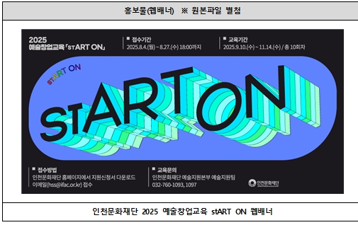 ▲ 인천문화재단 2025 예술창업교육 stART ON 웹배너 |