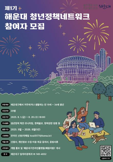 [뉴스스텝] 해운대구는 청년의 정책 참여를 확대하고, 청년의 시선에서 지역 현안을 바라보며 실질적인 변화를 이끌어갈 ‘제1기 해운대청년정책네트워크(해청넷)’의 참여자를 8월 20일까지 모집한다.