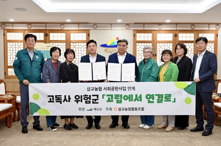 [뉴스스텝] 예산군은 삽교농협(김종래 조합장)과 저소득 고독사 고위험 가구를 위한 ‘고립에서 연결로 시범사업’ 업무협약을 체결했다고 1일 밝혔다.
