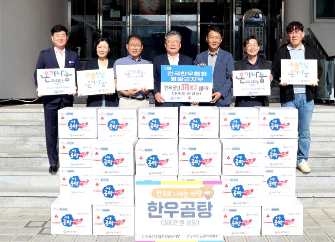 [뉴스스텝] 영광군은 지난 10일, 전국한우협회 영광군지부가 추석 명절을 맞아 관내 저소득층을 위해 한우곰탕(1.5kg) 376봉(300만 원 상당)을 기탁했다고 밝혔다.