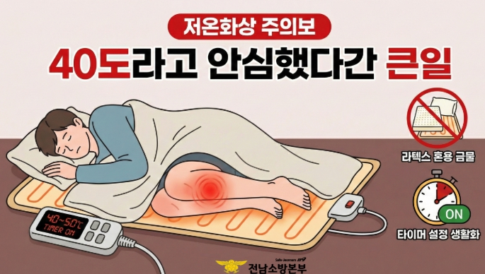 [뉴스스텝] 본격적인 연말 한파로 가정 내 난방기구 사용이 급증한 가운데, 전남소방본부가 '저온화상'에 대한 각별한 주의를 당부하고 나섰다.