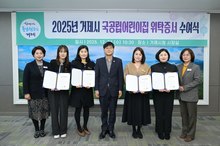 [뉴스스텝] 거제시는 12월 31일, 시장실에서 국공립어린이집 수탁자로 선정된 어린이집에 위탁계약증서를 수여했다.