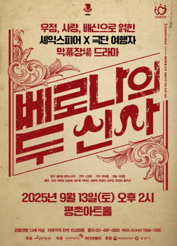 [뉴스스텝] 안양문화예술재단은 2025년 공연예술 지역 유통지원 사업 선정작인 연극 '베로나의 두 신사'를 오는 9월 13일 오후 2시 평촌아트홀에서 선보인다고 1일 밝혔다. 이번 공연은 지역 사회에 수준 높은 공연예술 향유 기회를 제공하고, 관객과의 소통을 확대하기 위해 마련됐다.