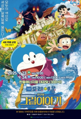 [뉴스스텝] 한국수력원자력(주) 한울원자력본부는 지역주민을 대상으로 9월 23일, 24일 양일간 한울에너지팜 대강당에서 극장판 애니메이션'도라에몽: 진구의 그림이야기'를 무료 상영한다.
