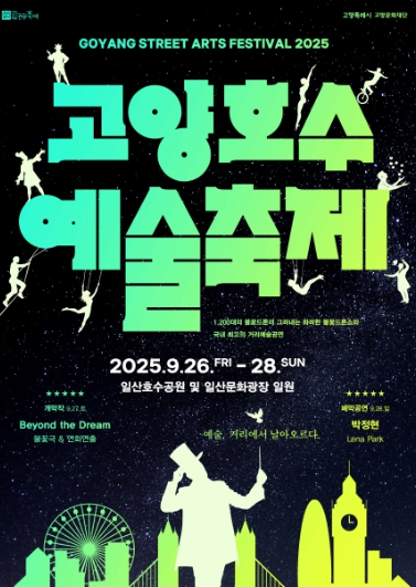 [뉴스스텝] 고양특례시가 주최하고 고양문화재단이 주관하는 대한민국 대표 거리예술축제 ‘2025 고양호수예술축제’가 오는 9월 26일부터 28일까지 일산호수공원과 일산문화광장 일원에서 열린다.