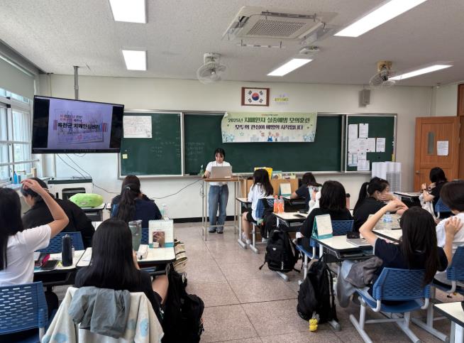 [뉴스스텝] 옥천군 치매안심센터가 7일 옥천여자중학교에서 치매에 대한 인식을 개선하고 실종 치매 환자 발견 시 신속한 대처 능력을 기르기 위해 2학년 학생 30여 명을 대상으로 ‘2025년 체험형 배회·실종 치매환자 발견 모의훈련’을 실시했다.