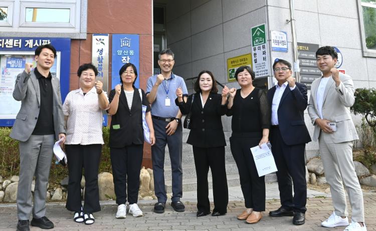 한양임 위원장은 “양산동은 인구도 많고 주민들의 참여도 활발한 지역인 만큼, 이번 증축이 주민자치 활성화와 공동체 발전의 좋은 기반이 될 것”이라며 “앞으로도 개선된 공간에서 다양한 프로그램을 운영해 모든 주민이 편리하게 이용할 수 있도록 노력해주길 바란다”고 당부했다.