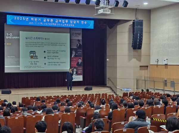 [뉴스스텝] 세종특별자치시교육청은 11월 6일에 세종시교육청교육원 대강당에서 각급학교 및 직속기관의 업무담당자를 대상으로 ‘공무원 급여 연수’, ‘중증장애인생산품 우선구매 교육’, ‘학교장터(S2B) 계약 연수’를 실시했다.