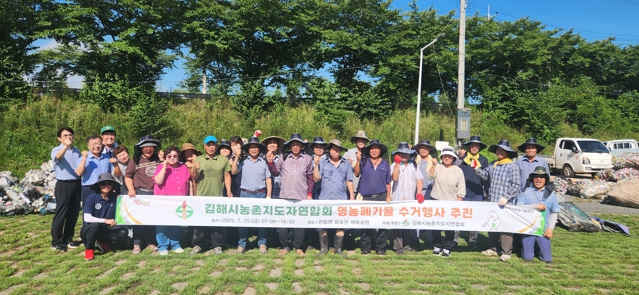 [뉴스스텝] 농촌지도자 김해시연합회(회장 최철근)는 25일 한림면 화포천 체육공원에서 회원 50여 명이 참석한 가운데, 읍·면·동 지역회에서 공동 수거한 약 8톤의 방치된 영농폐기물(농약병, 폐비닐 등)을 수거하는 행사를 진행했다고 밝혔다.