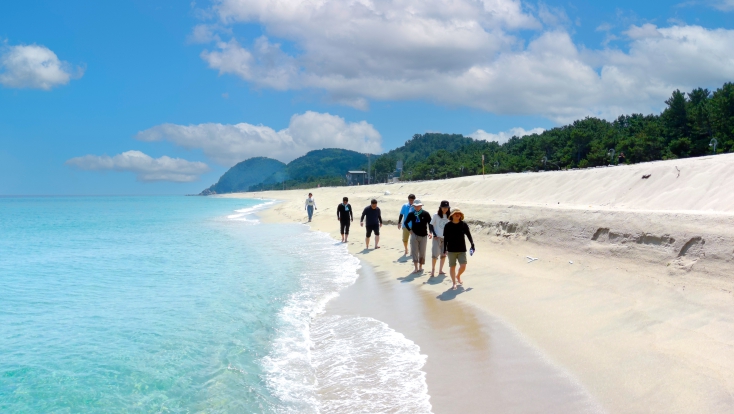 전국에서 가장 깨끗한 공기와 해변을 자랑하는 울진군은 청정 해안 환경과 함께 기암절벽, 해송 숲, 그리고 탁 트인 모래 해변을 모두 갖춘‘천혜의 어싱 명소’다.