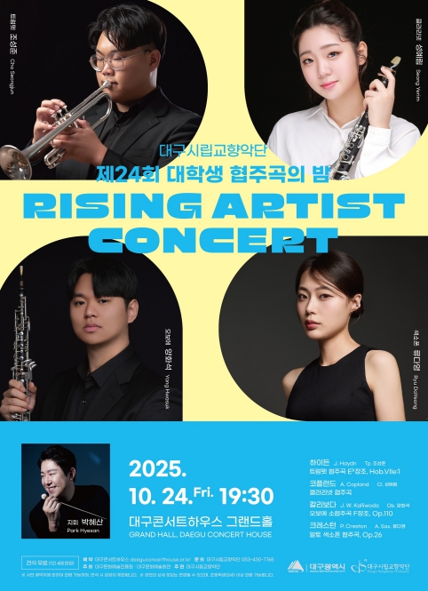 지휘는 대구시향 박혜산 부지휘자가 맡고, 협연자로는 조성준(트럼펫, 계명대 4), 성예림(클라리넷, 계명대 3), 양화석(오보에, 계명대 3), 류다영(색소폰, 계명대 2)이 무대에 오른다.