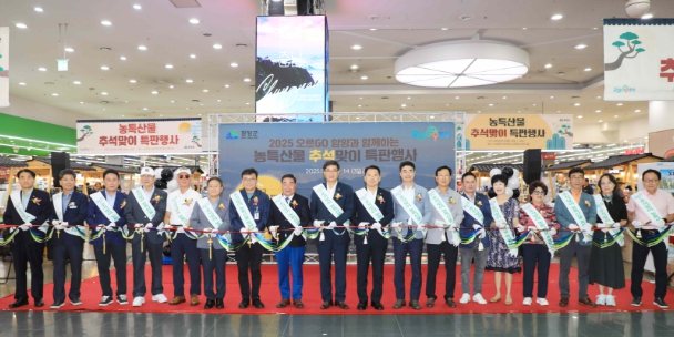 [뉴스스텝] 함양군은 9월 12일 서울 양재 하나로마트 이벤트홀에서 ‘오르GO 함양과 함께하는 추석맞이 함양농특산물 특판행사’ 개장식을 열었다.