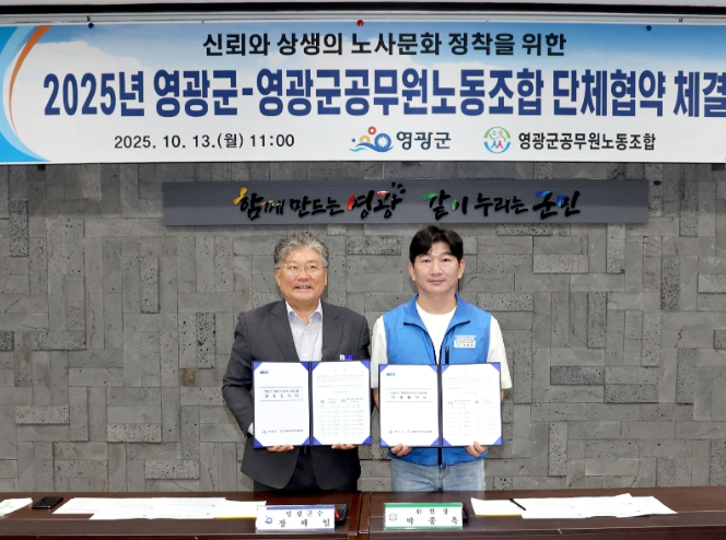 [뉴스스텝] 영광군은 지난 10월 13일 군청 2층 소회의실에서 영광군공무원노동조합과 “2025년 단체협약식”을 체결했다.