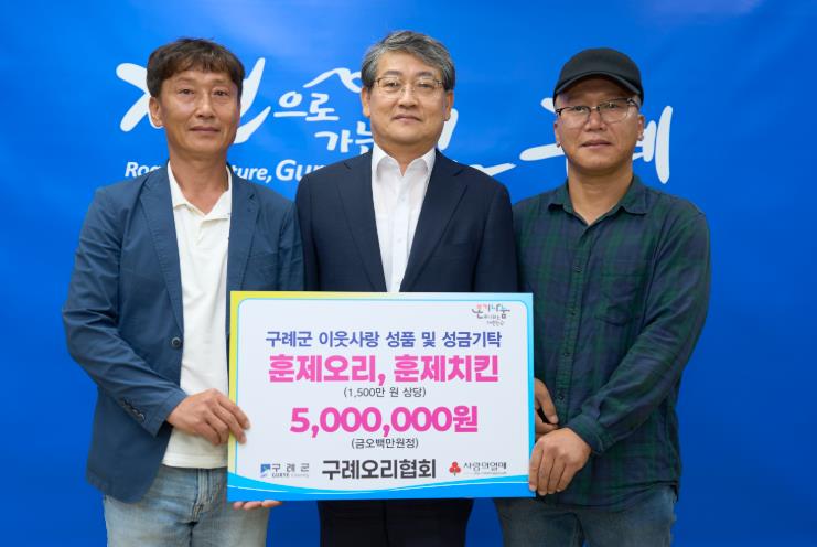 김순호 구례군수는 “항상 지역을 위해 따뜻한 나눔을 실천해 주시는 구례오리협회에 깊이 감사드린다”며 “기탁해주신 물품과 성금을 꼭 필요한 분들에게 소중히 전달하겠다”고 전했다.