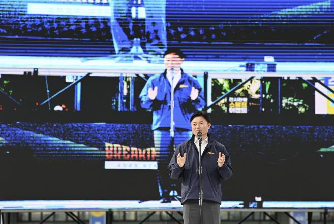 ▲ 조용익 부천시장이 ‘제10회 부천국제브레이킹대회(BIBC)’에서 인사말을 하고 있다. |