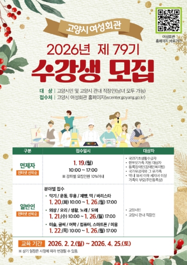 [뉴스스텝] 고양특례시 여성회관은 오는 1월 19일부터 26일까지 2026년도 제79기 정규강좌 수강생을 모집한다고 밝혔다.