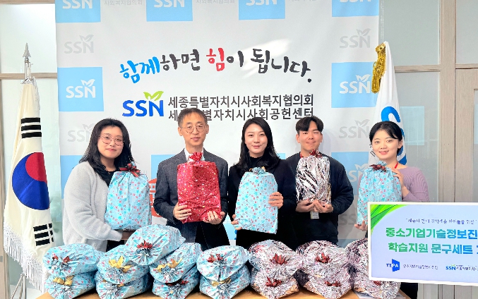 [뉴스스텝] 세종특별자치시사회복지협의회 사회공헌센터는 5일 중소기업기술정보진흥원과 함께 취약계층 아이들을 위한 학습지원 문구세트 기부식을 진행했다.