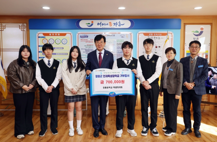 [뉴스스텝] 장흥중학교 학생자치회는 5일 (재)장흥군인재육성장학회에 지역 인재 육성을 위해 70만 원의 장학금을 기탁했다.