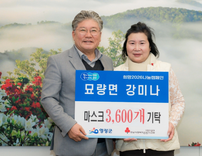 [뉴스스텝] 영광군은 2025년 12월 30일 묘량면에 거주하는 강미나 씨가 어려운 이웃들에게 전달해달라며 마스크 3,600개를 기탁해 희망2026나눔캠페인에 동참했다고 밝혔다.