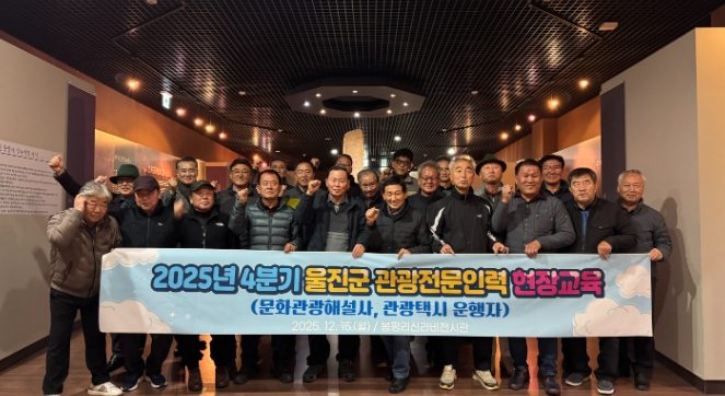 [뉴스스텝] 울진군은 지난 12월 15일 울진봉평리신라비전시관에서 울진군 관광택시 운행자와 문화관광해설사를 대상으로 2025년 4분기 울진군 관광전문인력 정기교육을 실시했다.