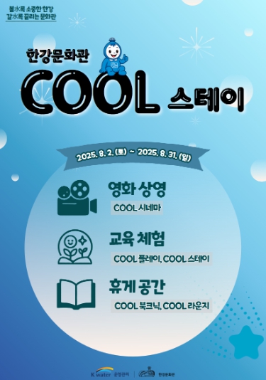 [뉴스스텝] K-water 한강보관리단과 케이워터운영관리 한강문화관은 도심 속 수변 공간에서 시민들이 무더위를 피해 여유롭고 쾌적한 여름을 보낼 수 있도록, 여름 특화 프로그램‘Cool Stay 한강문화관’을 8월 한 달간 운영한다.