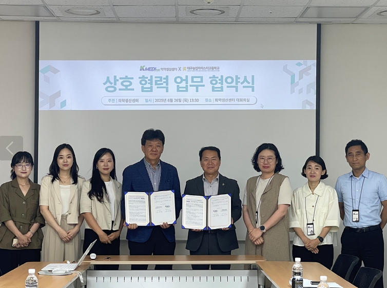 박구선 케이메디허브 이사장은 “케이메디허브 의약생산센터는 바이오 인재 양성에 꾸준히 힘써왔다”며, “이번 업무협약을 계기로 대구농업마이스터고와 더욱 긴밀히 협력해 지역 바이오 인재 양성에 앞장서겠다”고 말했다.