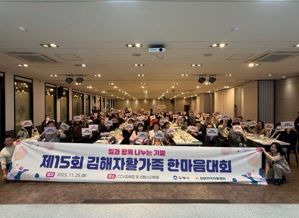 [뉴스스텝] 김해시는 지난 25일 김해CGV와 라페스타뷔페에서 자활근로사업단 참여자와 김해지역자활센터 종사자 150여명이 참석한 가운데 ‘제15회 김해자활가족한마음대회’를 개최했다고 26일 밝혔다.