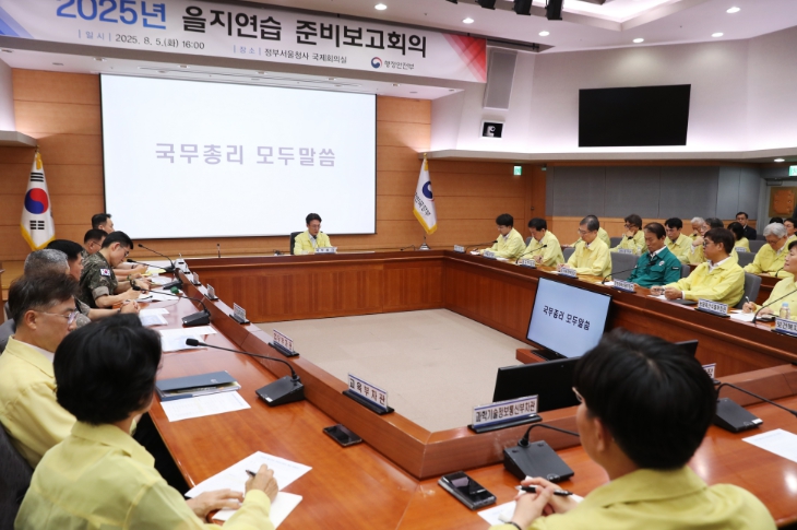 [뉴스스텝] 김민석 국무총리는 8월 5일 오후 정부서울청사에서 중앙행정기관장, 시·도지사, 군 지휘관 등이 참석한 가운데 2025년도 을지연습 준비보고회의를 주재했다.
