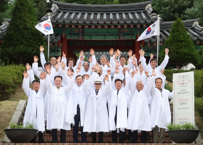 광복사에서 열린 위패 봉안식에서는 이교정(李敎政), 김분남(金粉男) 선생의 위패가 봉안됐다. 특히 이번 봉안식에는 이교정 선생의 후손인 93세의 이한수 님이 가족과 함께 참석해 헌화 및 분향을 진행하며 고인의 숭고한 뜻을 기리는 시간을 가졌다. 고령에도 불구하고 참석한 이한수 님은 “선친의 뜻을 이렇게 기억해 줘서 감사하다”고 소회를 밝히며 참석자들의 박수를 받았다.