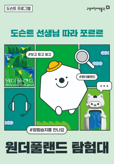 숨어 있는 습지 동물들을 찾아라! '원더풀랜드 탐험대' 프로그램에서는 고양시 장항습지의 생태계를 디지털로 구현한 전시 ‘원더풀랜드’ 속에서, 멸종위기 동물 친구들을 만나고 디지털 태블릿을 들고 직접 생물들을 찾아 나서는 인터랙티브한 체험이 펼쳐진다. AI 도슨트인 ‘로보캣’과 함께 미션을 수행하며 생태계와 환경 보호의 가치를 배운다.
