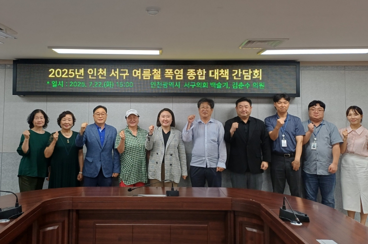 [뉴스스텝] 백슬기(더불어민주당·서구 라) 인천 서구의원이 지난 22일 서구의회 의원간담회장에서 ‘2025년 인천 서구 여름철 폭염 종합 대책 간담회’를 개최했다.