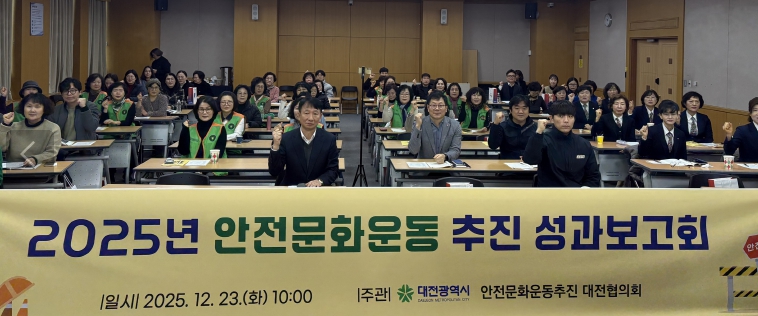 [뉴스스텝] 대전시는 23일 대전시청 세미나실에서 안전문화운동추진 대전협의회 소속 기관 및 단체 관계자 100여 명이 참석한 가운데 2025 안전문화운동 추진 성과보고회를 개최했다.