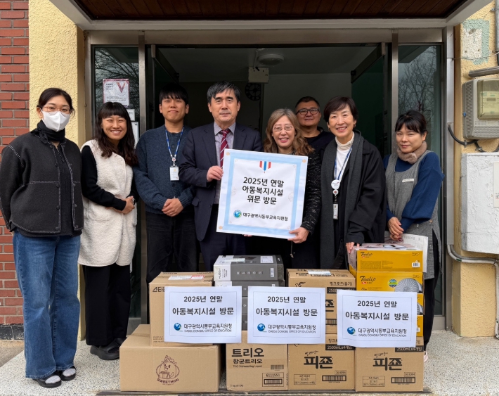 [뉴스스텝] 대구동부교육지원청은 12월 23일 동구 신평동에 위치한 아동복지시설 육영학사를 방문해 생필품을 전달하고 시설 관계자를 격려한다.