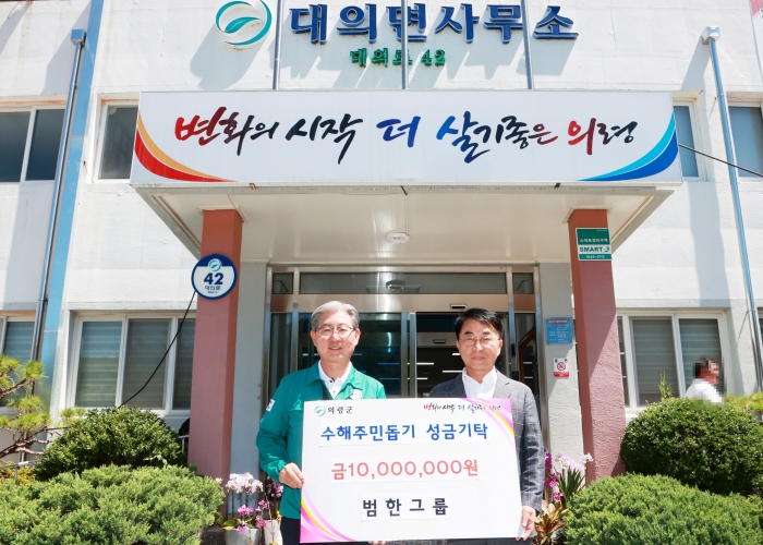 [뉴스스텝] 의령군은 범한그룹 정영식 회장이 최근 집중호우로 큰 피해를 입은 경남 의령 지역 수해 이재민들을 위해 성금 1,000만원을 기탁했다고 밝혔다.