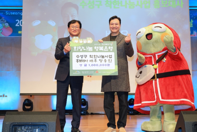 정웅인 씨는 2015년부터 수성구 착한나눔사업 홍보대사로 활동하며 지역 나눔 문화 확산에 기여해 왔다.