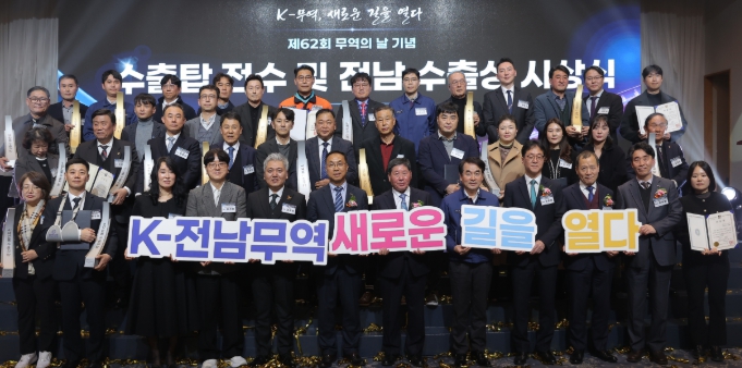 [뉴스스텝] 전라남도는 제62회 무역의 날을 기념해 수출탑 전수식과 전남 수출상 시상식을 지난 17일 호텔현대 바이 라한 목포에서 열어 전남 수출 성과를 공유하고 지속적인 수출 확대 방안을 모색했다.
