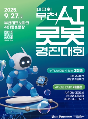 [뉴스스텝] 부천시와 부천산업진흥원은 오는 9월 27일, 부천테크노파크 401동 및 광장에서'제8회 부천AI로봇경진대회'를 개최한다. 이번 대회는 ‘피지컬AI(Physical AI)’를 핵심 주제로, 인공지능 기술과 실제 로봇의 융합 역량을 겨루는 장으로 마련된다.