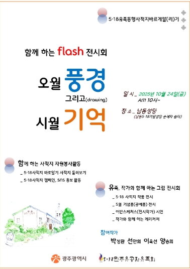 [뉴스스텝] 광주광역시는 5·18민주유공자유족회와 함께 24일 동구 남동5·18기념성당에서 시민과 함께하는 ‘오월 풍경 그리고(drawing) 시월 기억’ 전시회를 개최한다.